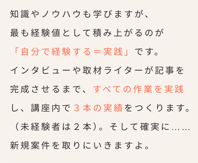 講座では、2〜3記事の実績をつくります。