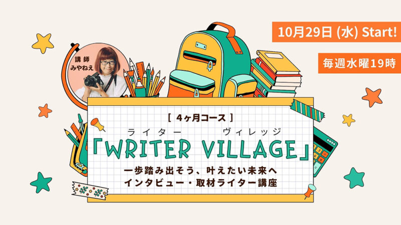 10月29日開講!インタビュー・取材ライター講座「ライターヴィレッジ」オンライン開催